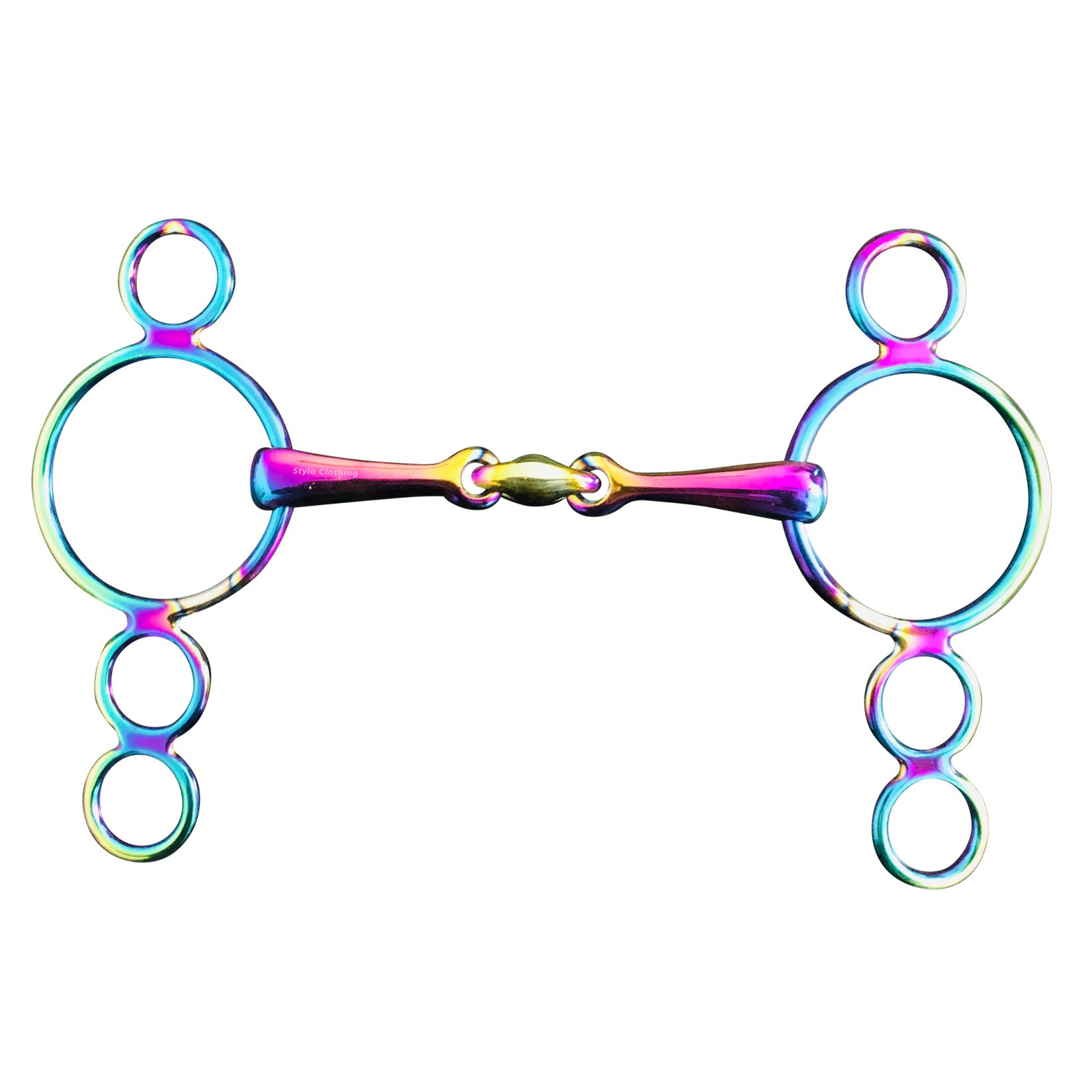 Top Selling Innovative Custom Made Trendy Multi Color 3 Ring Elevator Gag Snaffle Bits with Lozenge Link Stainless Steel Wholesale Equine Equipment. Stylo Clothing's stainless steel 3 Ring Elevator Gag Snaffle Bit consists of multi color three rings with Lozenge Link for best control, durability, and realism. The shanks of this bit is made of stainless steel and rings are made of Steel. The bit provides just enough elevation for sensitive mouthed horse. Stainless steel construction ensures that it will never rust, bend, or break. All types of English Bits are available in wholesale.Top Quality Snap Hook with Adjustable Nut – 20+ Articles