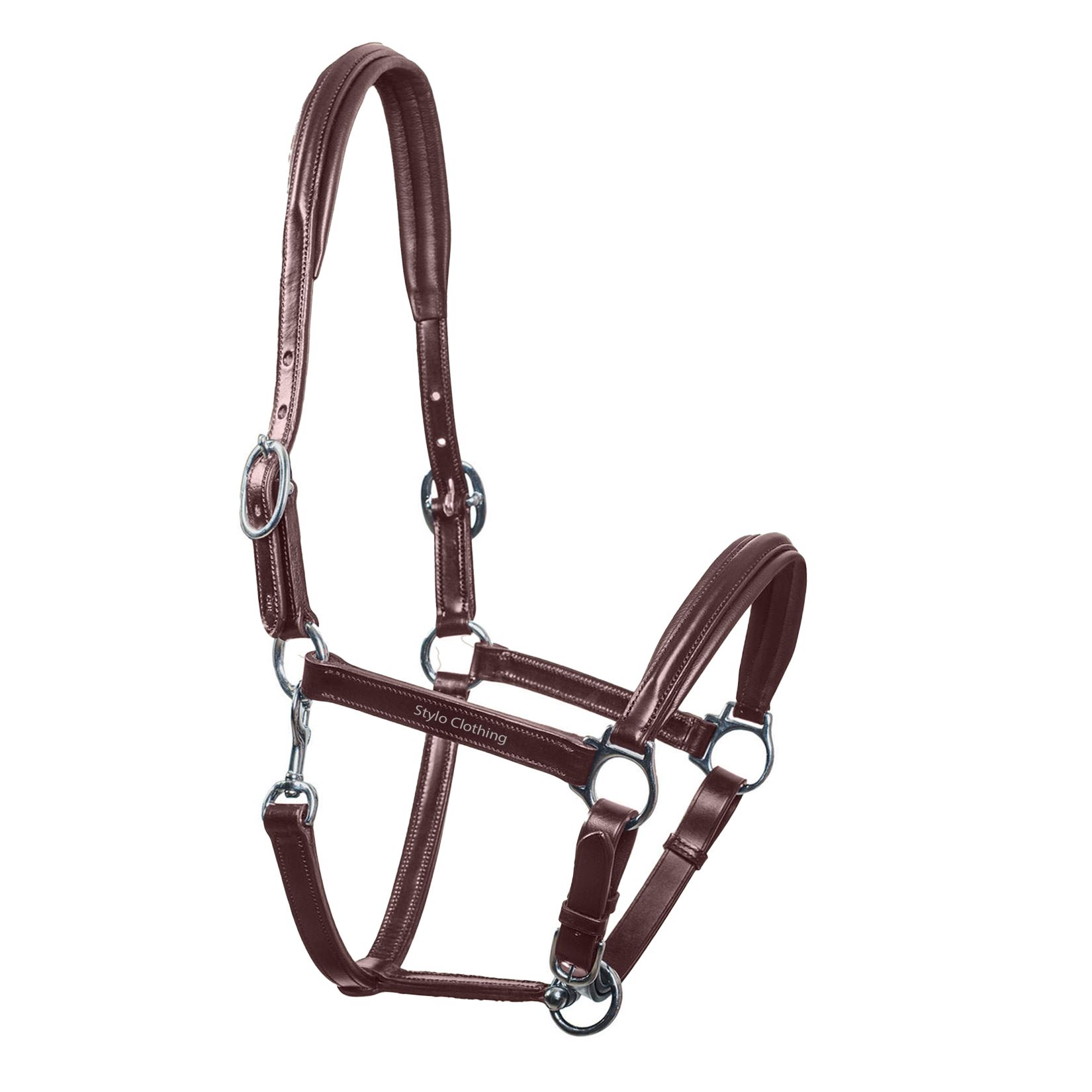 Durable Stylish Trendy Classical Customized Leather Halter for Horse with Padded Head and Nose Band. Our elegant leather horse halter is the perfect halter not only for daily work but also for giving your horse a glamorous look. Stylo Clothing best simple leather halter is in all colors with white padding head along the nose and crown for a unique and trendy look. All custom sizes of Halters are available. [read more]