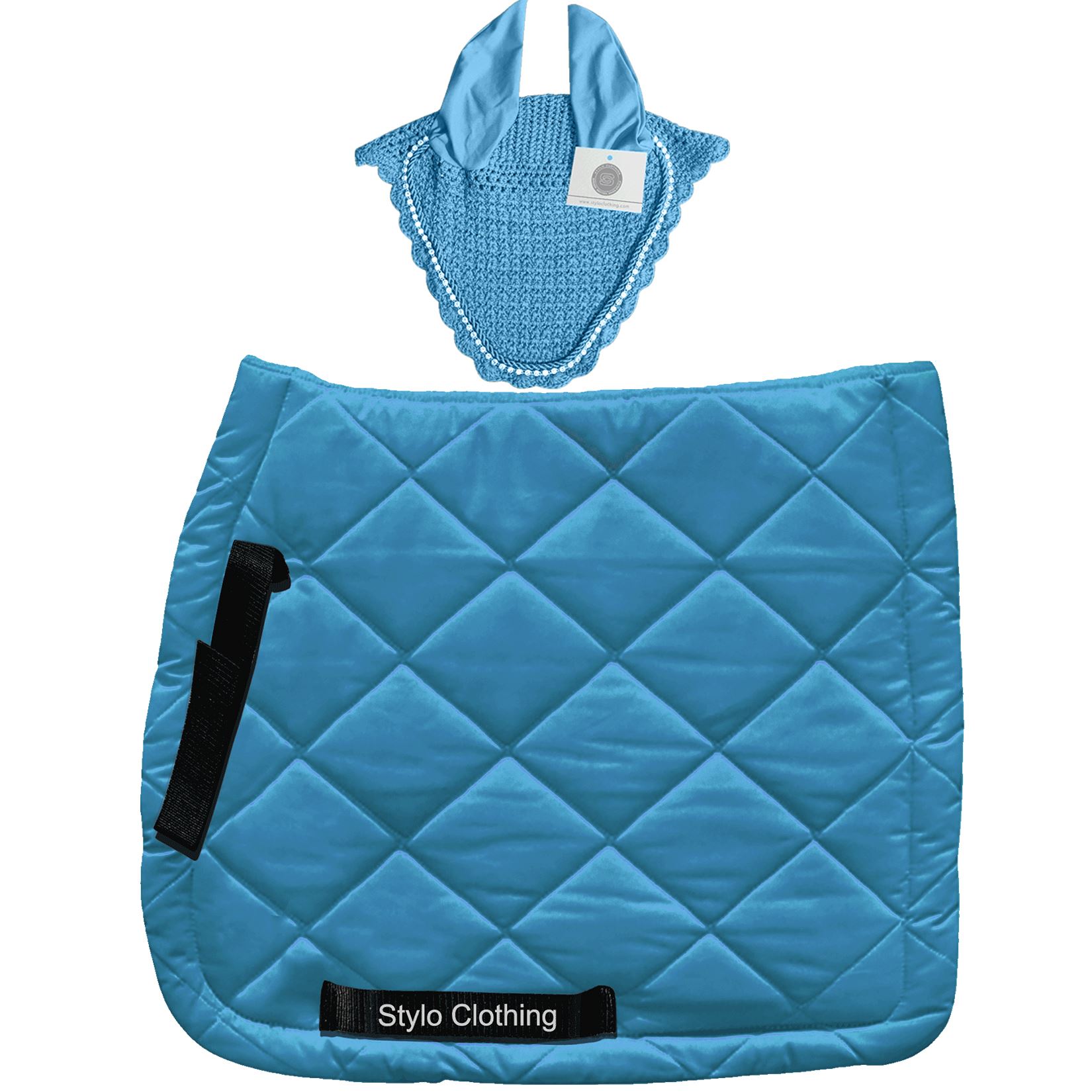 Don't settle for ordinary equestrian apparel. Elevate your riding experience with Stylo Clothing Matchy Sets. Get the perfect combination of style and comfort with our Dressage Matching Set. It contains of saddle pad and tie down ear bonnets set from Stylo Clothing. The saddle pad features a starfish quilt design and is made from 100% cotton with a soft cushioning for your horse's comfort. The tie down ear bonnets is available in a range of colors with attractive rhinestones, offering breathability and protection from flies and bugs. Order now to customize the colors and sizes to fit your horse perfectly with our Dressage Matching Sets.